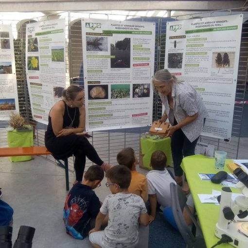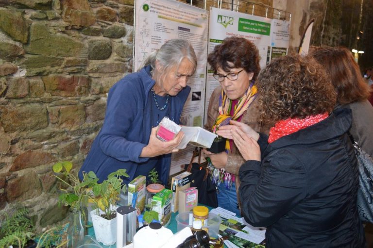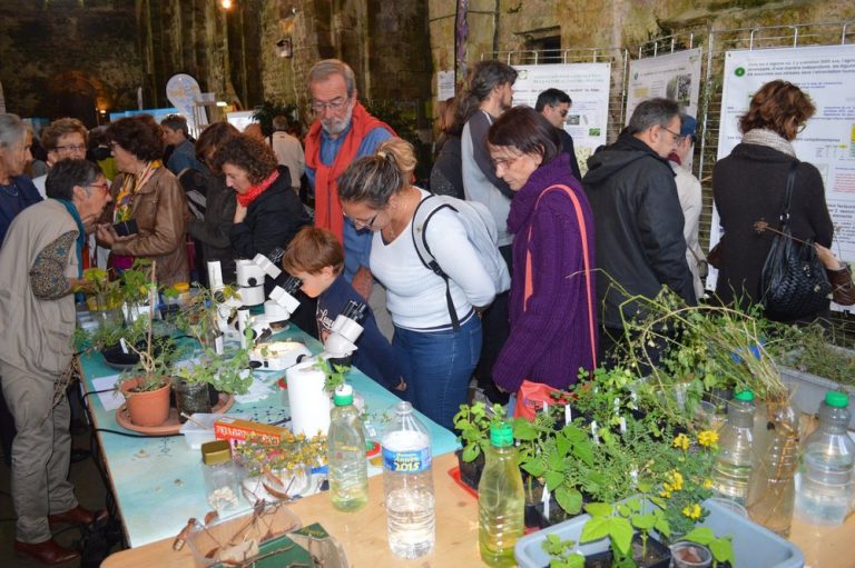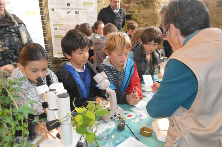 Pour atteindre ces objectifs nous avons donné deux conférences pour le grand public, le week end, qui ont réuni, à chaque fois, environ 45 personnes. Ces conférences s’appuyaient sur 3 légumineuses représentatives de cette famille botanique: le robinier, l’acacia et la luzerne. Nous avons également réalisé une exposition comprenant des affiches faites spécialement et des stands. Les affiches illustraient les principales espèces de Légumineuses ainsi que leurs habitats et utilisations. Leur importance dans l’alimentation humaine était décrite. Sur les stands, nous avons montré des légumineuses d’utilisation commune pour l’alimentation humaine ou animale (pois chiches, haricots, pois, vesces, luzernes, lotiers, trèfles…) à différents stades de croissance (graines, germination, floraison, fruits) qui ont été observées à l’oeil nu ou à la loupe binoculaire. Les nodosités fixatrices d’azote atmosphérique ont également été observées. Nous avions aussi rassemblé des parties de plantes illustrant les caractéristiques des Légumineuses: des fleurs, des gousses de robinier, de caroubier et d’albizzia, des rameaux épineux, un piquet d’ « acacia », de la farine de caroube etc… Cet atelier a remporté un vif succès tant en nombre de visiteurs qu’en intérêt. 180 enfants (6 classes de Primaire et 2 classes de 5ème) ont visité l’exposition pendant les 2 jours ouverts aux scolaires. Nous avons offert à chaque classe de Primaire un pot de luzerne qui, d’année en année, rappellera aux enfants cette visite. Les visiteurs grand-public ont manifesté beaucoup d’intérêt et posé de nombreuses questions.