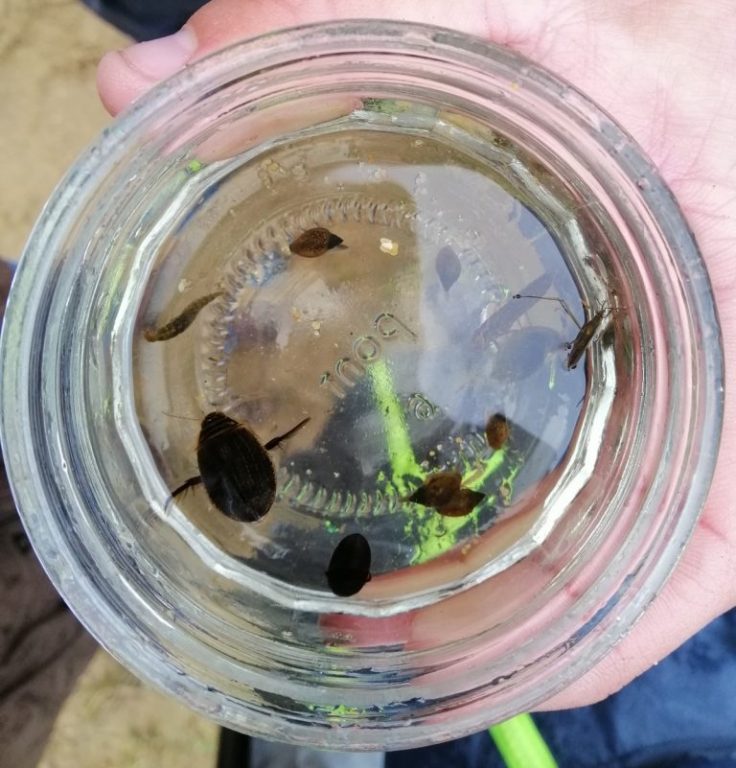 Le dimanche 18 mai, nous nous sommes retrouvés aux Conches Bressaudières sous le soleil, munis d’épuisettes, récipients et loupes afin d’observer de près la vie de la mare.