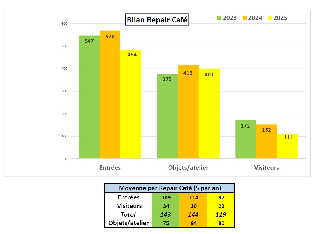 Bilan de l’année 2025 avec les 5 Repair Café qui ont mobilisé une équipe de bénévoles, qui aujourd’hui comptabilise 58 personnes.