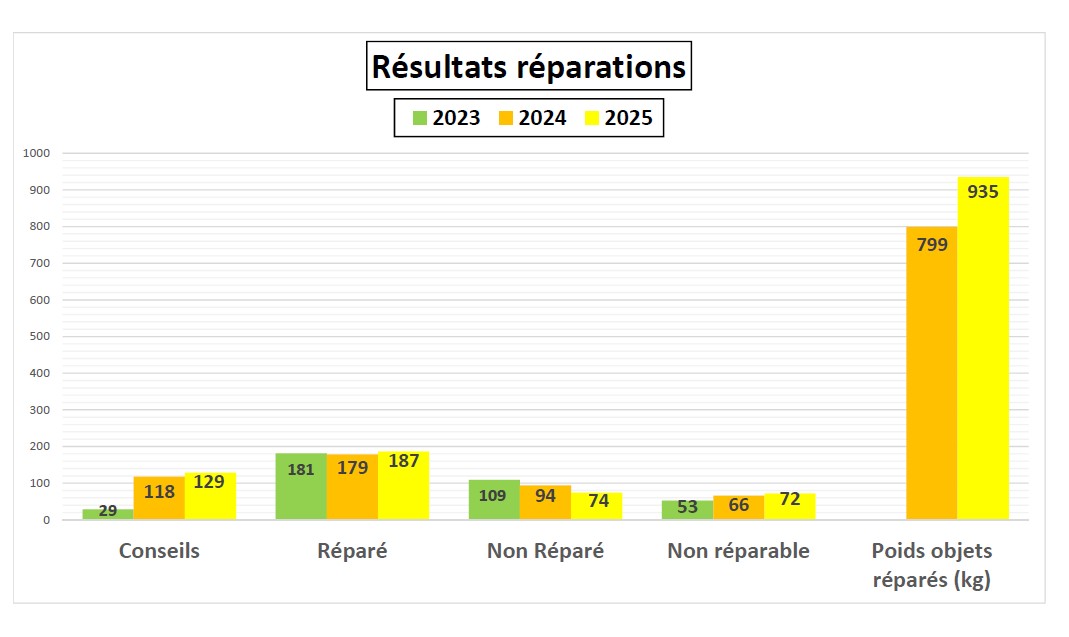 Cette année 47 % des objets passés en atelier ont été réparé, soit 935 Kgs d’objets qui ne rejoindront pas les déchetteries.