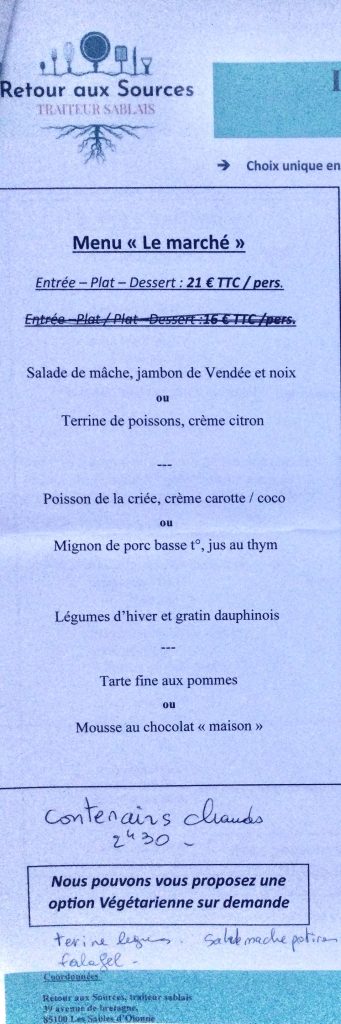 Pour le repas, nous avons sélectionné le menu du marché à 21 € par personne chez Retour aux Sources, à chacun :