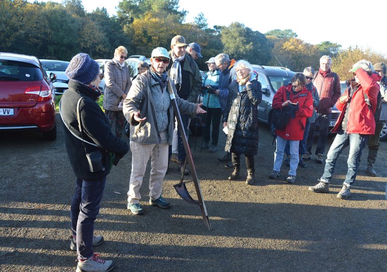 Josiane nous présente le baccarrache , outil qui permet d’enlever au mieux le Baccharis halimifolia, plante invasive et indésirable dans nos milieux naturels, dunes et marais, et donne les dates des prochains chantiers APNO sur les marais sablais.