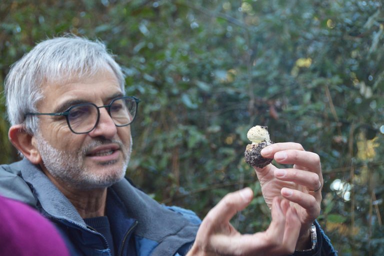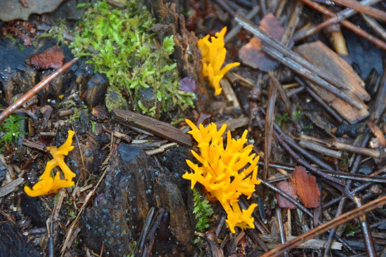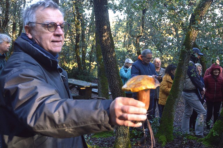 Quelques champignons rencontrés : Amanite citrine Amanita citrina, Bolet des bouviers Scuillus bovinus , Bolet bai Xerocomus badius, Bolet joli du chêne vert Leccinum lepidum, Chanterelle en tube Cantharellus tubiformis, Lactaire délicieux Lactarius deliciosus, Lactaire atlantique Lactarius atlanticus, Lactaire à lait jaune Lactarius chrysorrheus, Russule xerampéline, Russule prinophile associée au chêne vert, Coulemelle Macrolepiota procera, laccaire améthiste Laccaria amethystina, la trémelle mésentérique jaune , le ganoderme luisant tout rouge,la stérée réflechie, le xylaire du bois, la vesse de loup perlée, la très jolie astrée hygrométrique dans la dune. Leur rôle soit en décomposeurs soit en symbiose est essentiel.