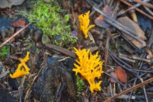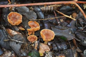 Quelques champignons rencontrés : Amanite citrine Amanita citrina, Bolet des bouviers Scuillus bovinus , Bolet bai Xerocomus badius, Bolet joli du chêne vert Leccinum lepidum, Chanterelle en tube Cantharellus tubiformis, Lactaire délicieux Lactarius deliciosus, Lactaire atlantique Lactarius atlanticus, Lactaire à lait jaune Lactarius chrysorrheus, Russule xerampéline, Russule prinophile associée au chêne vert, Coulemelle Macrolepiota procera, laccaire améthiste Laccaria amethystina, la trémelle mésentérique jaune , le ganoderme luisant tout rouge,la stérée réflechie, le xylaire du bois, la vesse de loup perlée, la très jolie astrée hygrométrique dans la dune. Leur rôle soit en décomposeurs soit en symbiose est essentiel.