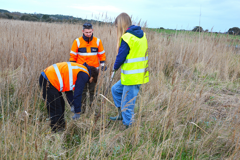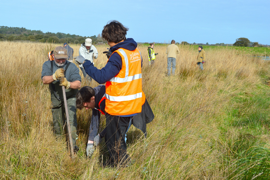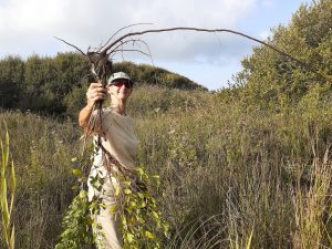 Un chantier d’arrachage de plantes exotiques envahissantes avec les jeunes sur le marais sablais.