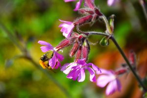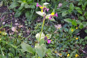 Première observation : le compagnon rouge Silene dioica famille des Cariophyllacées, grande plante duveteuse non collante et la cardamine des prés Cardamina pratense.