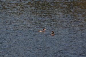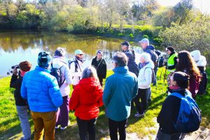 Puis le groupe se régale avec la parade nuptiale d’un couple de Grèbe huppé tel des danseurs passionnés avec offrande au partenaire. De nombreux chants d’oiseaux nous ont accompagné : pouillot véloce, pinson des arbres, bouscarle de Cetti, rougegorge familier, pigeon ramier, fauvette à tête noire, troglodyte mignon, mésange charbonnière, vu également des gallinules poules d’eau, canards colvert, un grand cormoran, héron cendré, entendu la mouette mélanocéphale, 2 bergeronnettes des ruisseaux en aval du barrage …