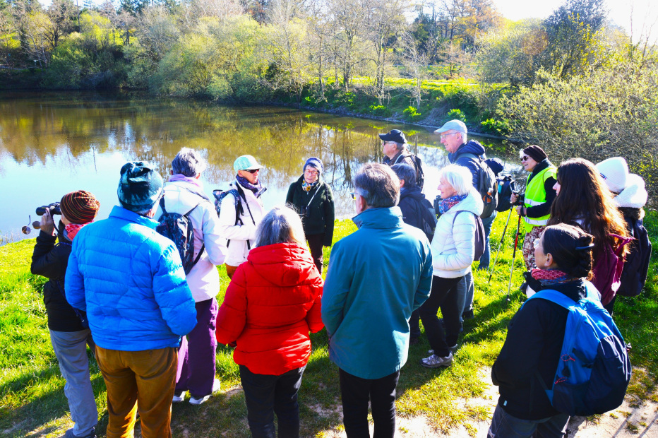 Avec le plan de gestion établi par le Conseil Départemental, les différents milieux sont clairement identifiés et leur gestion en est appropriée avec une fauche annuelle avec extraction. Le lac étant très fréquenté par les promeneurs et les pêcheurs, les bords du chemin sont fauchés plus souvent ainsi que certaines zones d’accès au lac, ce qui permet de préserver une bonne partie des rives. Les espèces invasives comme le ragondin et la jussie sont surveillées et gérées par la Communauté de Communes du Pays de St Gilles-Croix-de-Vie.21 personnes présentes pour cette première sortie de l’année, changement d’heure et air frisquet ont sans doute eu raison de quelques adhérents restés au chaud. L’idée ici est d’aller découvrir un espace naturel en dehors des Sables d’Olonne, pour ouvrir quelque peu notre regard naturaliste.