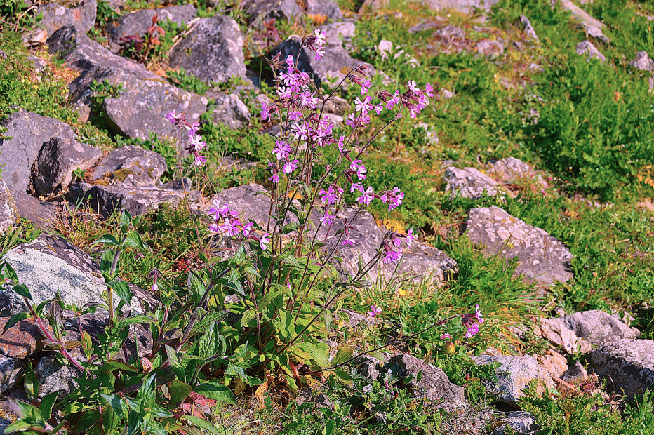 Première observation : le compagnon rouge Silene dioica famille des Cariophyllacées, grande plante duveteuse non collante et la cardamine des prés Cardamina pratense.