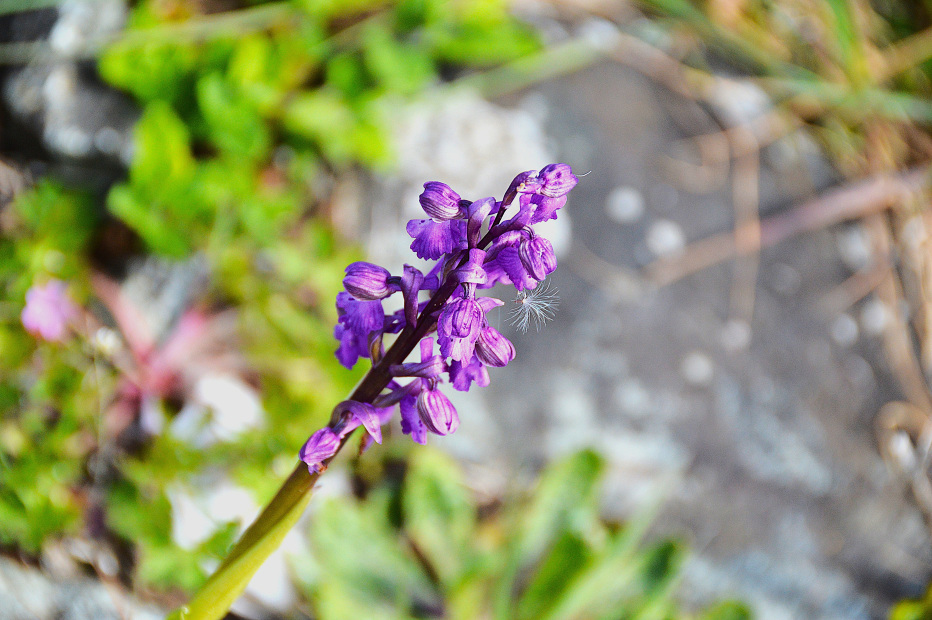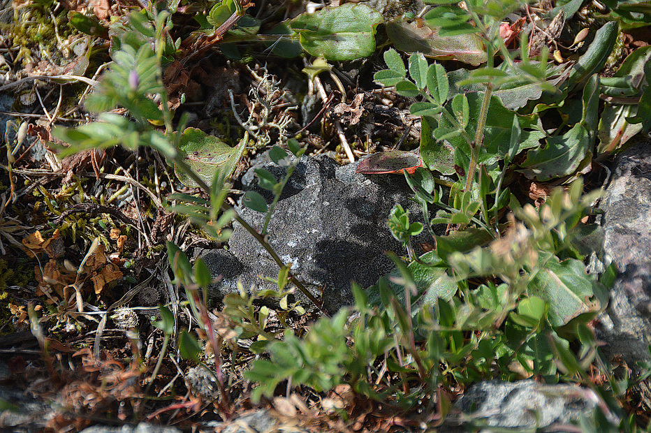 Sur le barrage, construit en argile compactée de provenance locale, nous avons observé au travers des enrochements l’Ornithope délicat Ornithopus perpusillus, Tabouret des champs Thlaspi arvense, Erodium à feuilles de cigue Erodium cicutarium , petite oseille Rumex acetosella, mâche en fleur Valerianella locusta, millepertuis perfolié Hypericum perforatum, une véronique, une orchidée :l’Orchis morio … et à nouveau lecompagnon rouge. Si la météo avait été plus clémente, nous aurions peut-être pu observer le lézard des murailles, le lézard vert et autres reptiles présents sur ce type de milieu.