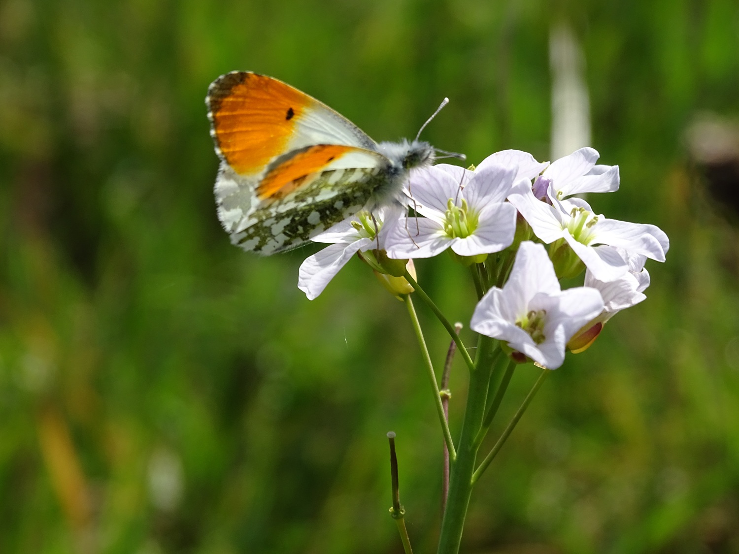 Par contre, en deux heures de balade, nous aurons croisé le chemin de 3 papillons seulement, une Piéride, une Thécla de la ronce et un Aurore mâle butinant sur la Cardamine des près Cardamina pratense ! Mais où sont-ils passés ?