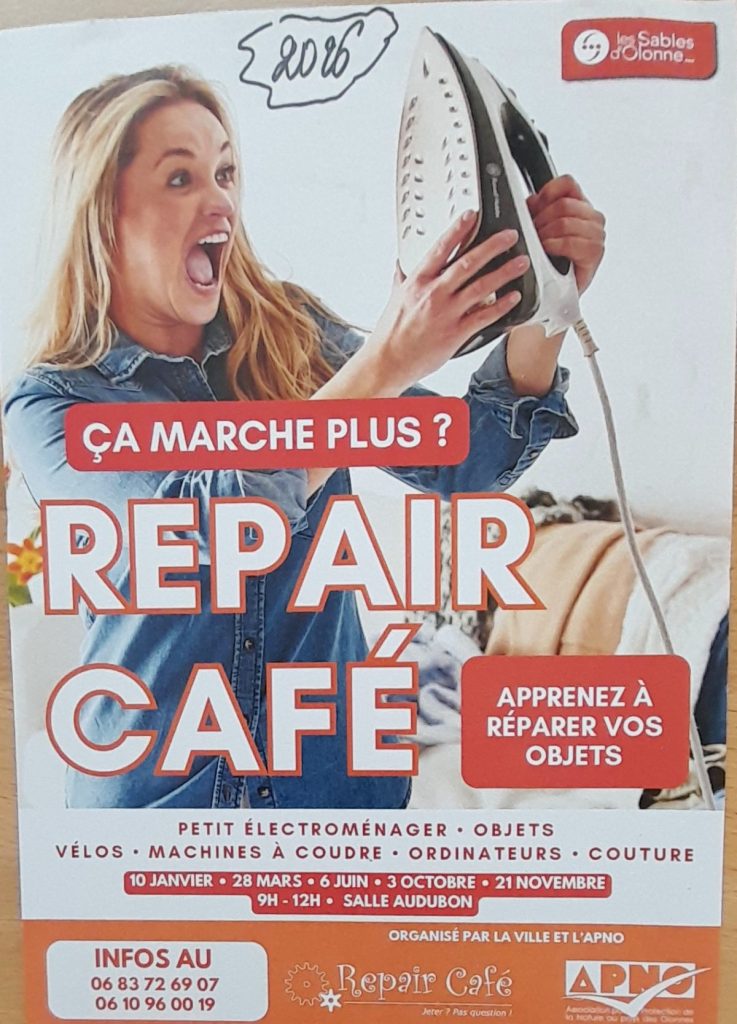 Repair Café salle Audubon (Les Sables d’Olonne) de 9 h à 12 h.